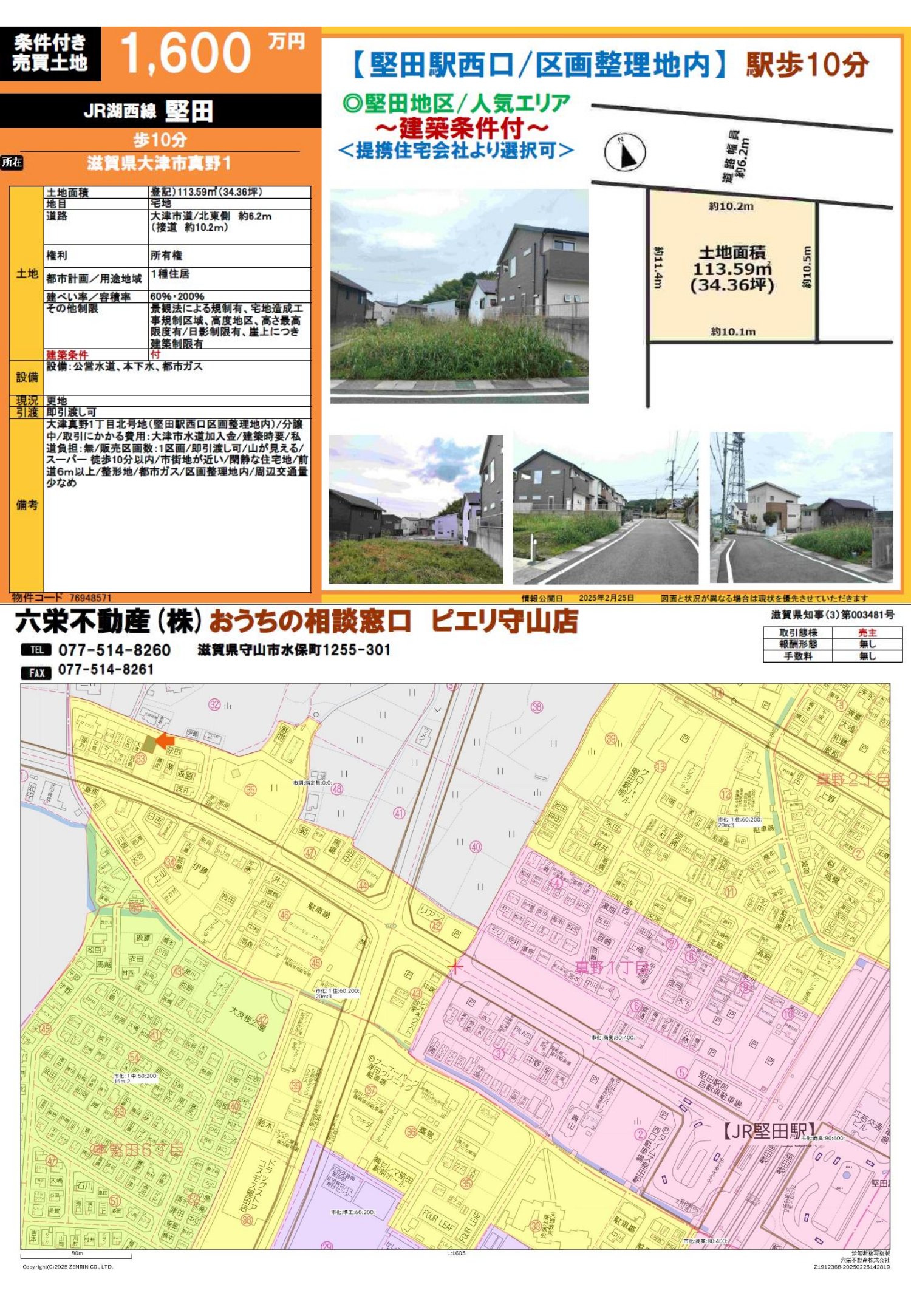 • 売土地 New 『堅田駅西口』【大津市真野1丁目】最終1区画販売!JR堅田駅徒歩10分