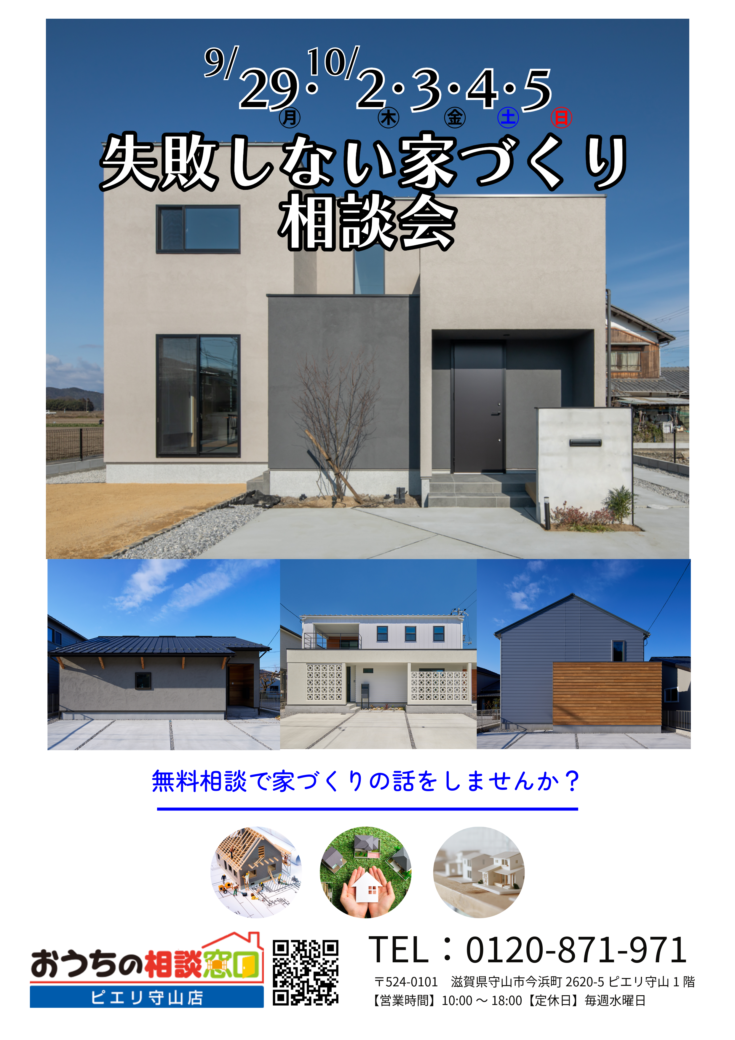 2025年09月22日(月) 家づくり相談会 9/29(月)・10/2(木)・3(金)・4(土)・5(日)は『失敗しない家づくり相談会』を開催❢おうちの相談窓口ピエリ守山店♪