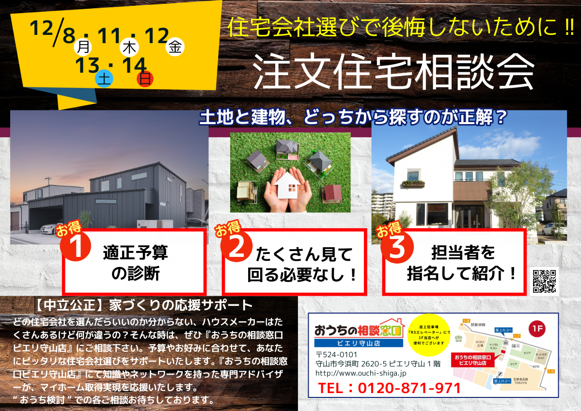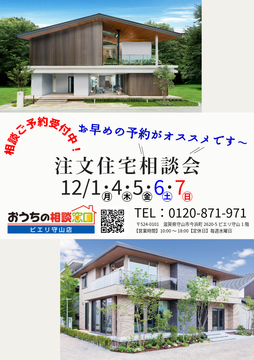 2025年12月01日(月) 家づくり相談会 New 11/8(月)・11(木)・12(金)・13(土)・14(日)は『注文住宅相談会』を開催❢おうちの相談窓口ピエリ守山店♪ -